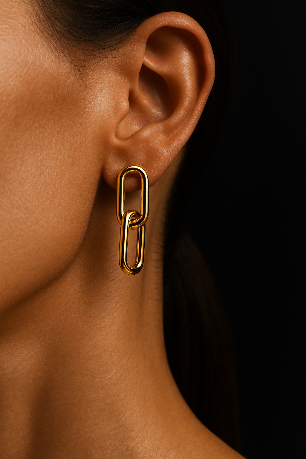 Bringing a modern edge with a unique chain-link design, the Link Dangler Earrings add a bold yet versatile touch to any look. Ideal for both casual wear and evening style, they transition effortlessly between occasions. Crafted from stainless steel, they’re anti-tarnish, waterproof, and made for lasting shine and durability.